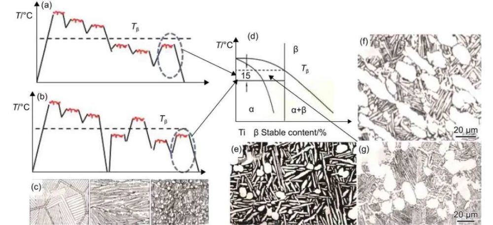 As shown in Figure 3, in the typical application of two-state organization, there are mainly near-β forged “three-state” tissue control of TC11 titanium alloy and ta15 titanium alloy thick plate, forging two-state tissue control. Among them, “three-state organization” can also be understood as a two-state organization considering the transformation of β phase organization parameters.